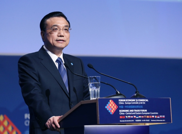 ????圖為2013年11月26日,國務(wù)院總理李克強(qiáng)出席第三屆中國—中東歐國家經(jīng)貿(mào)論壇并致辭。當(dāng)天,李克強(qiáng)在布加勒斯特與羅馬尼亞等13個(gè)中東歐國家總理共同出席第三屆中國—中東歐國家經(jīng)貿(mào)論壇并致辭。 新華社記者姚大偉攝
