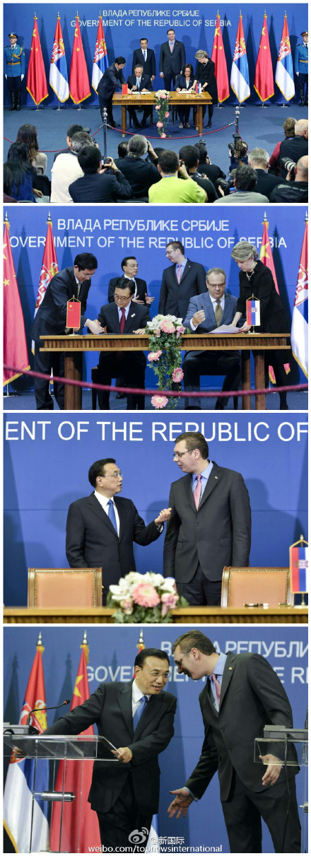 ????新華網(wǎng)北京12月18日電,據(jù)新華社“新國際”微博報道,李克強(qiáng)總理17日與塞爾維亞總理武契奇舉行會談。他說,希望中塞雙方密切人文交流,擴(kuò)大教育、文化、旅游合作,望塞方為中國游客提供更多簽證便利。會談后,兩國總理共同見證了雙方經(jīng)濟(jì)技術(shù)、能源、金融、航空、文化等領(lǐng)域合作文件的簽署。