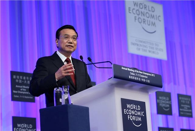 2013年9月11日,克強總理在大連出席2013年夏季達沃斯論壇開幕式并致辭。