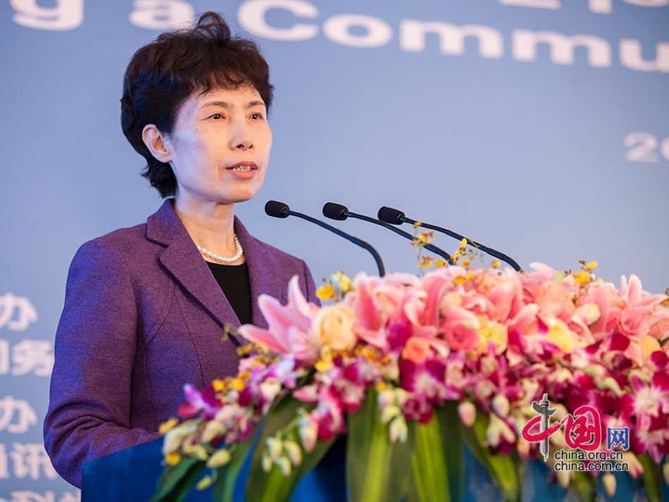 圖為中華人民共和國(guó)商務(wù)部副部長(zhǎng)高燕在“21世紀(jì)海上絲綢之路國(guó)際研討會(huì)”高峰論壇發(fā)表演講。中國(guó)網(wǎng)記者 鄭亮 攝