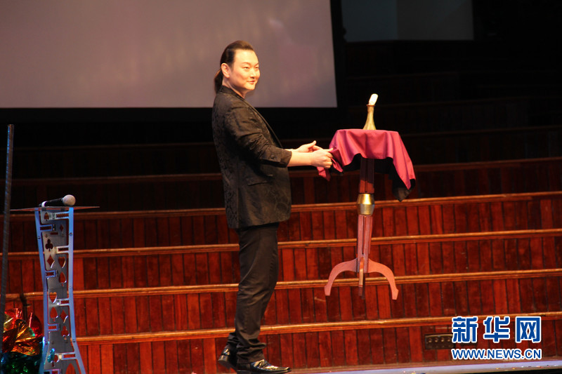 ??????? 2月25日,由中國(guó)國(guó)務(wù)院僑辦和中國(guó)海外交流協(xié)會(huì)聯(lián)合主辦的“文化中國(guó)·四海同春”在悉尼舉辦大洋洲團(tuán)的首場(chǎng)演出,歌手成方圓、中國(guó)好聲音學(xué)員李維、周深等國(guó)內(nèi)知名表演者和中澳藝術(shù)團(tuán)體為當(dāng)?shù)厝A僑華人送來新春祝福。圖為中國(guó)雜技團(tuán)著名青年魔術(shù)師李寧表演魔術(shù)。新華社記者趙小娜攝
