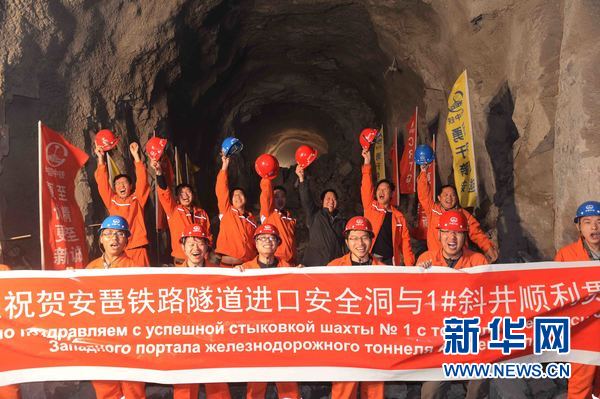 ????圖為烏茲別克斯坦安格連至琶布鐵路隧道進口安全洞與1#斜井之間4699米的隧洞實現(xiàn)貫通現(xiàn)場。