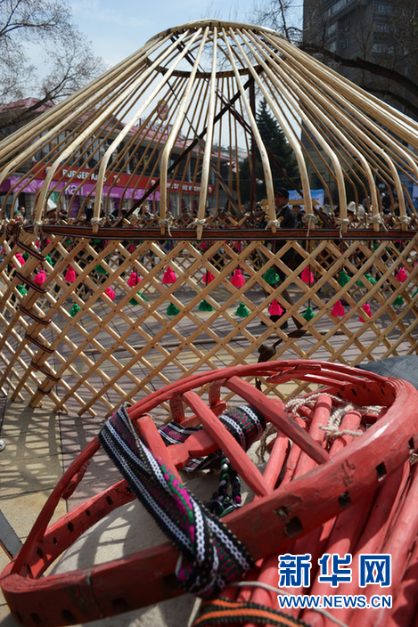 ????4月4日、5日,在阿拉木圖舉辦首界氈房節(jié)。穿著民族服裝的民間藝人搭起具有悠久傳統(tǒng)的哈薩克氈房。氈房上部為穹形,下部為圓柱形,四壁有網(wǎng)狀的木桿搭成整個(gè)氈房的骨架,外包白氈。氈房里四周是掛毯,地上是花氈地毯,上面刺著各種圖案,令人賞心悅目。哈薩克斯坦舉辦這次活動(dòng)是為了將哈薩克氈房列入世界非物質(zhì)文化遺產(chǎn)名錄。(文/盧敬利 圖/葉蓮娜)