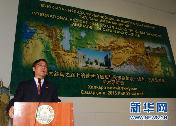姜鋒還說(shuō),上海作為中國(guó)發(fā)展最前沿城市之一,非常重視高校交流與發(fā)展。上海外國(guó)語(yǔ)大學(xué)重視與烏茲別克斯坦高校學(xué)術(shù)交流合作。今年起上海外國(guó)語(yǔ)大學(xué)將開設(shè)烏茲別克語(yǔ),并與撒馬爾罕國(guó)立外國(guó)語(yǔ)學(xué)院共同推動(dòng)撒馬爾罕孔子學(xué)院成為中烏教育合作、文化交流的橋梁。姜鋒強(qiáng)調(diào),支持雙方科研部門就學(xué)術(shù)交流、人員互訪、合作開展科學(xué)研究等項(xiàng)目進(jìn)行合作。姜鋒表示,撒馬爾罕國(guó)立外國(guó)語(yǔ)學(xué)院和上海外國(guó)語(yǔ)大學(xué)合作創(chuàng)辦的孔子學(xué)院“撒馬爾罕孔子學(xué)院”對(duì)推動(dòng)中烏戰(zhàn)略伙伴關(guān)系發(fā)展,加強(qiáng)共建絲綢之路經(jīng)濟(jì)帶框架下中烏之間的教育合作和人文交流,將會(huì)作出自己獨(dú)特的貢獻(xiàn)。