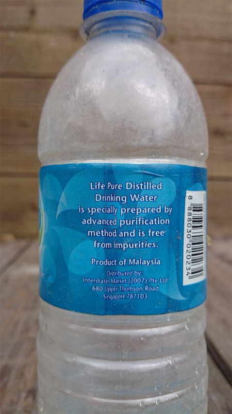 圖為當(dāng)?shù)芈蓭煱l(fā)現(xiàn)的礦泉水瓶,上面標(biāo)有“產(chǎn)自馬來西亞”。