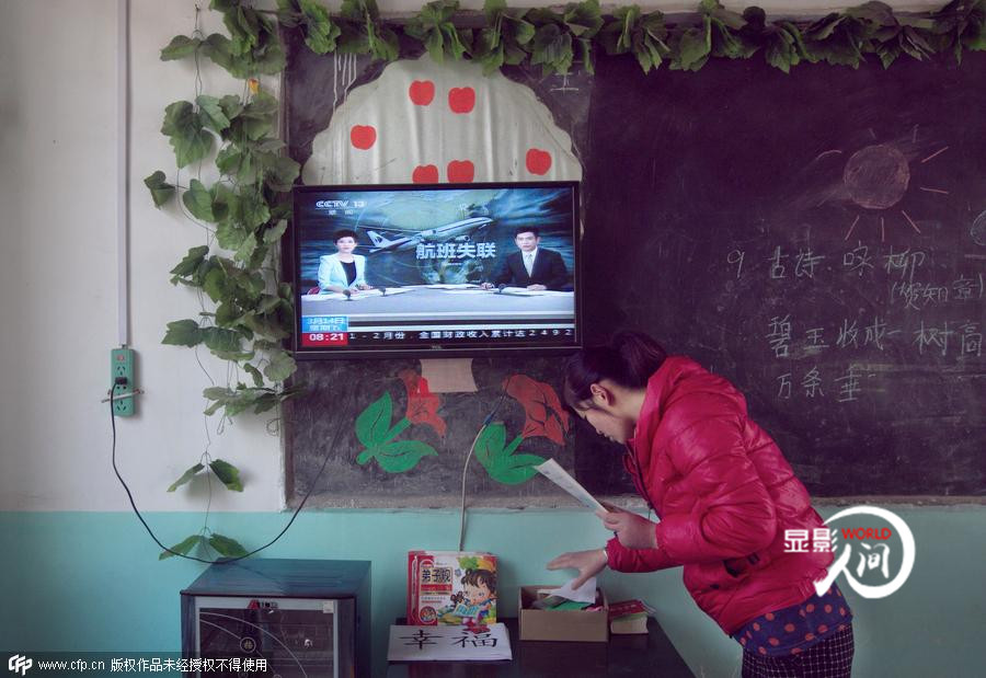 2014年3月8日上午8時左右,馬航宣布MH370航班失聯(lián)。這一消息猶如一個重磅炸彈,迅速引起了全國乃至世界范圍內(nèi)的民眾的持續(xù)關注。2014年3月14日,在山東曲阜一家幼兒園,一名幼兒教師在備課,黑板上的電視正在播放失聯(lián)航班的報道。