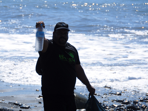 阿加特和隊(duì)友向記者展示他們搜尋到的物品:難以看出來(lái)源的白色塑料框架、變形嚴(yán)重的金屬殘片、廢舊橡膠輪胎、阿童木造型的塑料娃娃……更多的則是飲料瓶、沙灘鞋這種海灘上常見(jiàn)的“垃圾”。一些帶著中文、日文商標(biāo)的飲料瓶則會(huì)讓搜尋人員們感到有些“興奮”。