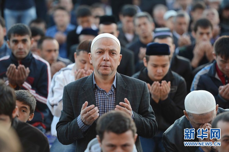 ?。乖拢玻慈眨跒跗潉e克斯坦首都塔什干哈斯特·伊瑪姆建筑群清真寺廣場,人們參加古爾邦節(jié)禮拜。當(dāng)天,烏茲別克斯坦各地慶祝伊斯蘭教傳統(tǒng)節(jié)日古爾邦節(jié)?!肮艩柊罟?jié)”亦稱“宰牲節(jié)”,是伊斯蘭教三大節(jié)日之一。 新華社記者沙達(dá)提 攝