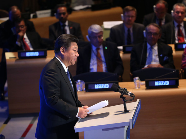 26日,在聯(lián)合國(guó)發(fā)展峰會(huì)上,習(xí)近平發(fā)表題為《謀共同永續(xù)發(fā)展 做合作共贏伙伴》的重要講話。