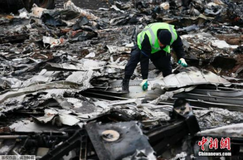 資料圖:當?shù)貢r間2014年11月16日,烏克蘭頓涅茨克地區(qū),墜毀MH17飛機殘骸收集工作進行中。據(jù)悉,在事故現(xiàn)場已成功搜尋到起落架的部分殘骸,一大塊機身殘片和以及疑似乘客遺體。專家們希望將這些殘骸運往荷蘭之后,能夠通過技術手段還原某個部件,以確定事故具體原因。
