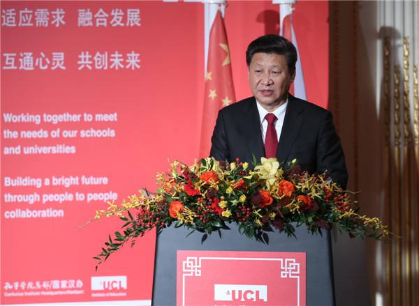 10月22日,國家主席習近平在倫敦出席全英孔子學院和孔子課堂年會開幕式。這是習近平在年會開幕式上致辭。(新華社記者龐興雷攝)