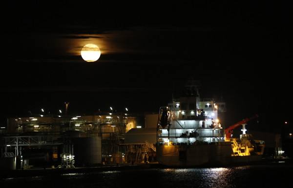 ↑每時每刻不停運轉(zhuǎn)的安特衛(wèi)普港夜景。