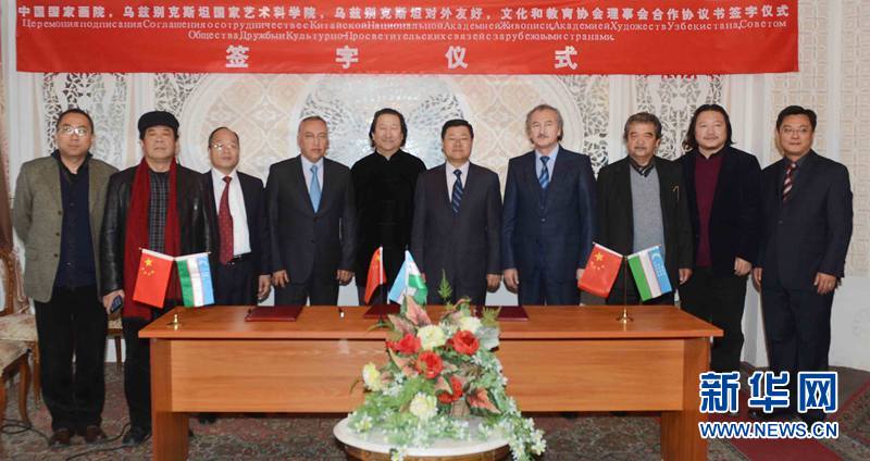 當(dāng)天上午,中國國家畫院院長楊曉陽與烏茲別克斯坦對(duì)外友協(xié)副主席阿比多夫和烏茲別克斯坦國家藝術(shù)科學(xué)院院長努爾金諾夫,在中國駐烏茲別克斯坦大使孫立杰以及烏媒體代表共同見證下,分別在協(xié)議書上簽字。協(xié)議聲明,三方將定期為兩國藝術(shù)家開展美術(shù)創(chuàng)作、研究提供條件,定期舉辦創(chuàng)作寫生、藝術(shù)展覽及學(xué)術(shù)研討等文化藝術(shù)交流活動(dòng)。