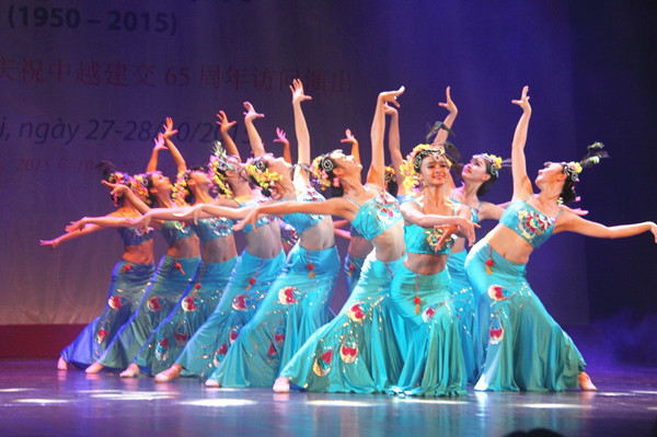 2015年10月27日,中國云南省藝術(shù)團在越南首都河內(nèi)表演傣族舞蹈《美的祝?!罚瑧c祝中越建交65周年。