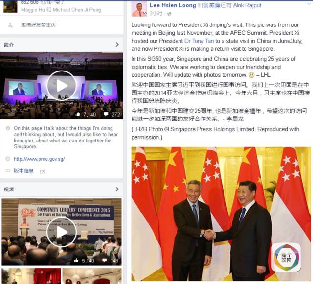 李顯龍還用中英文寫道,“今年六月,習主席也在中國接待我國總統(tǒng)陳慶炎。今年是新加坡和中國建交25周年,也是新加坡金禧年,希望這次的訪問能進一步加深兩國的友好合作關系。”