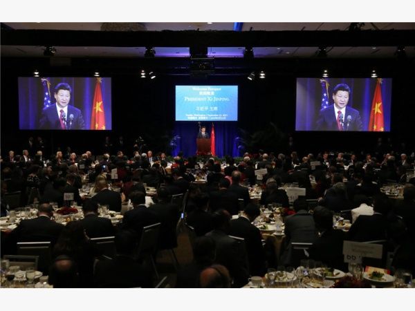 ——習主席2015年9月22日在美國華盛頓州西雅圖市,出席華盛頓州當?shù)卣兔绹押脠F體聯(lián)合舉行的歡迎宴會時發(fā)表演講。