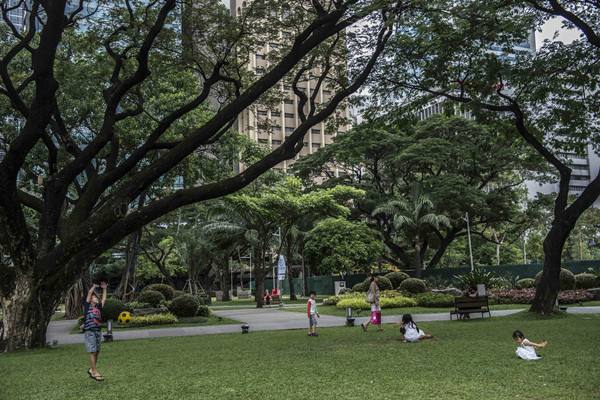 11月15日,小朋友們?cè)隈R尼拉的一個(gè)公園玩耍。(新華社記者呂曉煒攝)