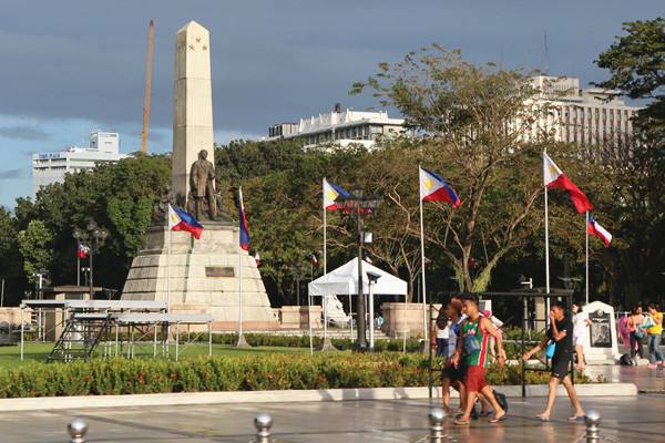 11月15日,人們?cè)隈R尼拉黎剎廣場(chǎng)游玩。(新華社記者李鵬攝)