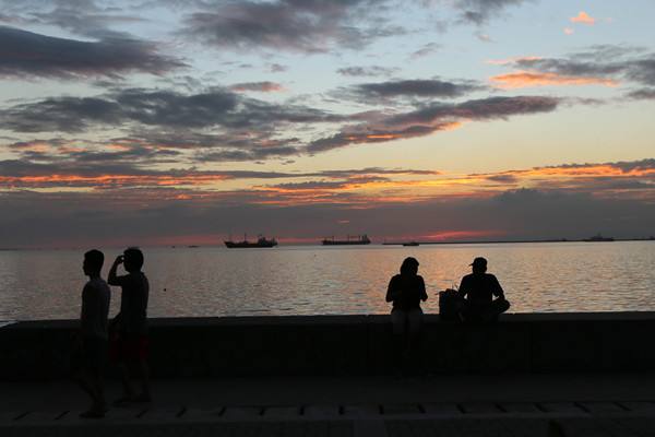 11月15日,人們?cè)隈R尼拉灣畔觀看日落。 (新華社記者李鵬攝)