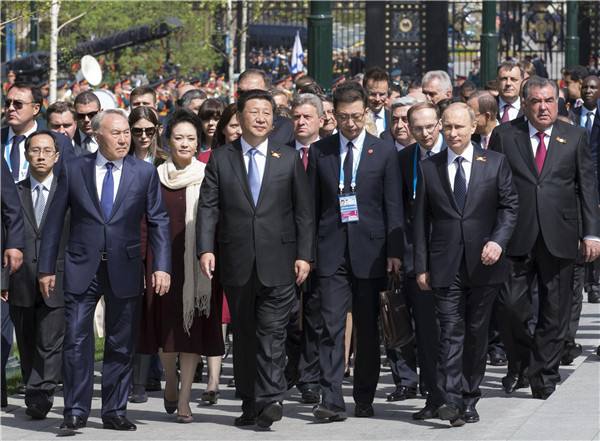 2015年5月8日,習(xí)近平抵達(dá)俄羅斯首都莫斯科,開始訪問俄羅斯,并出席俄羅斯紀(jì)念衛(wèi)國戰(zhàn)爭勝利70周年慶典。