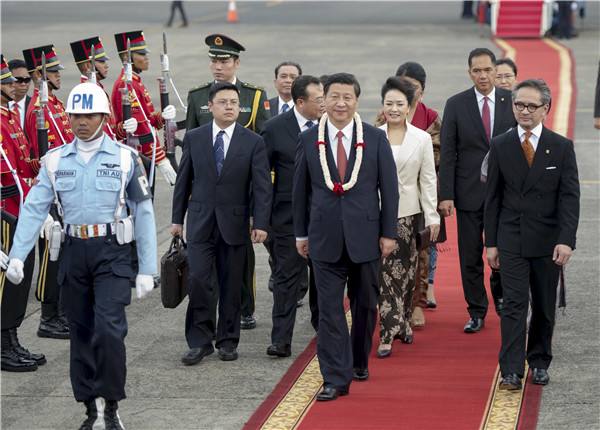 圖為2013年10月2日,習(xí)近平抵達(dá)雅加達(dá)開始對(duì)印度尼西亞進(jìn)行國事訪問。(馬占成攝)