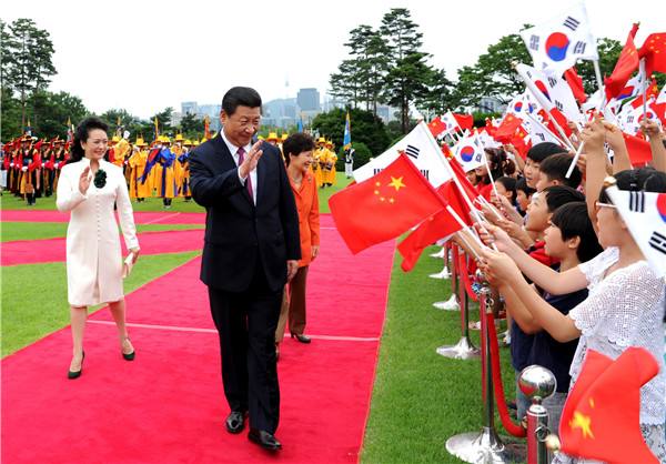 2014年7月3日,習(xí)近平抵達(dá)首爾,對(duì)韓國進(jìn)行國事訪問。