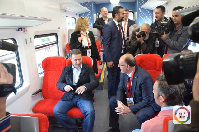 圖為馬其頓總理格魯埃夫斯基(左一)乘坐動(dòng)車(chē)。新華社發(fā)