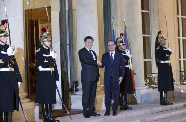 習(xí)主席29日下午抵達(dá)巴黎時(shí),受到法方熱情接待。奧朗德總統(tǒng)作為東道國領(lǐng)導(dǎo)人,面對千頭萬緒的工作,仍專門安排時(shí)間,與習(xí)主席單獨(dú)會見并共進(jìn)晚餐。可要知道,法方所面對的是150多位各國元首和政府首腦,奧朗德單獨(dú)同習(xí)主席共進(jìn)晚餐,重視程度可見一斑。