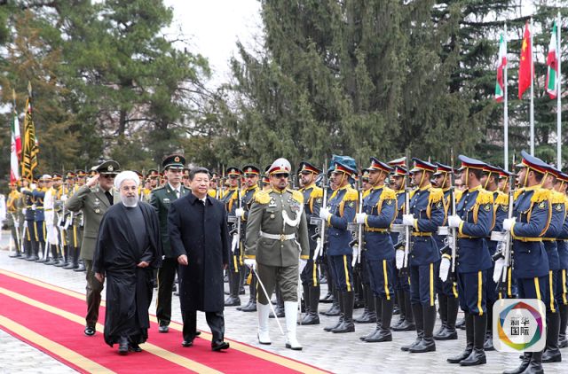 1月22日,國家主席習(xí)近平乘專機(jī)抵達(dá)伊朗首都德黑蘭,開始對伊朗進(jìn)行國事訪問。(新華社記者饒愛民攝)  1月23日,國家主席習(xí)近平出席伊朗總統(tǒng)魯哈尼在薩德阿巴德王宮共和國樓廣場舉行的隆重歡迎儀式。