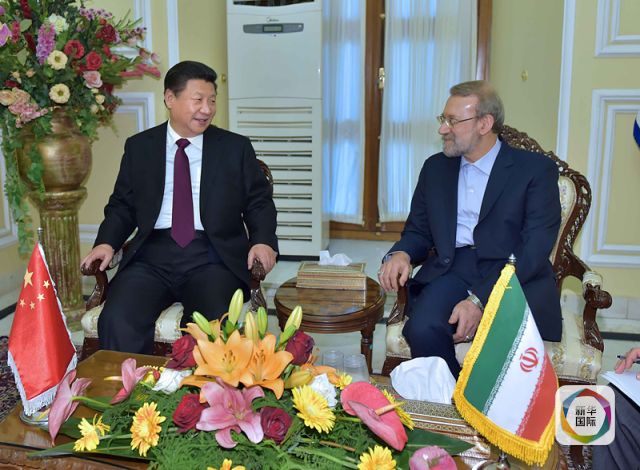 1月23日,國家主席習(xí)近平在德黑蘭會見伊朗伊斯蘭議會議長拉里賈尼。(新華社記者李濤攝)