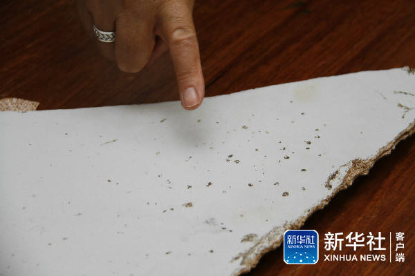 ↑這張3月3日拍攝的資料照片顯示的是,在莫桑比克首都馬普托,莫桑比克民航管理局局長若昂·德阿布雷烏在新聞發(fā)布會上向記者展示飛機(jī)殘片上密集的凹凸點(diǎn)。新華社記者 李曉鵬 攝