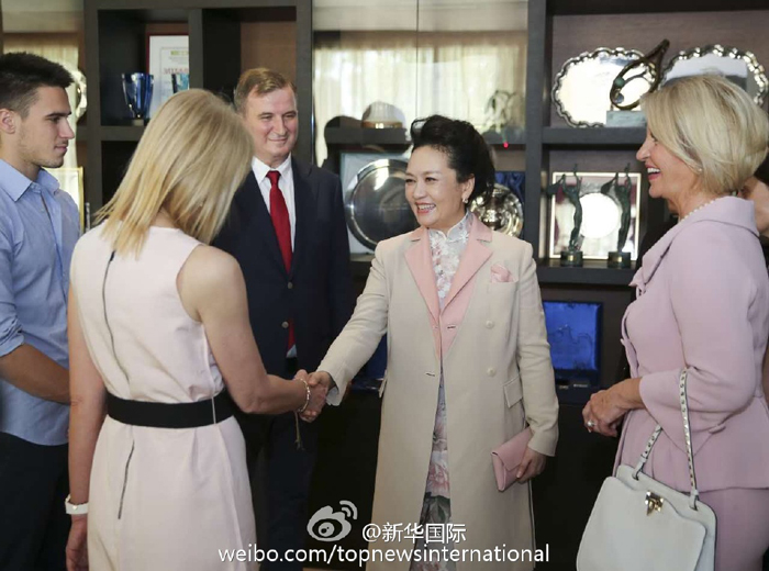??? 新華網(wǎng)北京6月18日電 18日中午,彭麗媛在塞爾維亞總統(tǒng)夫人德拉吉察陪同下,參觀了德約科維奇網(wǎng)球培訓中心,并同塞爾維亞著名網(wǎng)球運動員德約科維奇的母親、叔父和弟弟親切會面。彭麗媛對德約科維奇家人說:“小德在中國擁有很多粉絲。”彭麗媛稱贊德約科維奇不僅球技精湛而且充滿愛國情懷。彭麗媛還向網(wǎng)球培訓中心贈送德約科維奇自傳《一發(fā)制勝》的中文版。?(新華社新華國際微博報道)