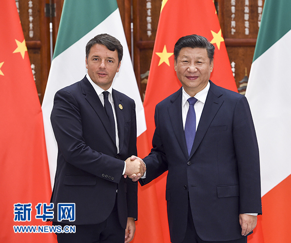 習(xí)近平歡迎倫齊來華出席二十國集團(tuán)領(lǐng)導(dǎo)人杭州峰會(huì)。習(xí)近平指出,近年來,中意關(guān)系取得長足進(jìn)步,雙方秉承相互尊重、互利共贏精神,深化政治互信,擴(kuò)大務(wù)實(shí)合作,使兩國人民獲得實(shí)實(shí)在在的利益。中方愿同意方攜手努力,不斷推進(jìn)兩國全面戰(zhàn)略伙伴關(guān)系向前發(fā)展。我們要堅(jiān)持兩國戰(zhàn)略互信大方向,尊重彼此核心利益和重大關(guān)切,密切兩國政府、議會(huì)、政黨交流合作。要堅(jiān)持互利共贏原則,優(yōu)勢互補(bǔ),實(shí)現(xiàn)共同發(fā)展。中方歡迎意方積極參與“一帶一路”建設(shè)。我們要以古老文明為依托,密切人文交流,深化傳統(tǒng)友誼。要加強(qiáng)在國際和地區(qū)事務(wù)中的協(xié)調(diào)和配合,努力構(gòu)建以合作共贏為核心的新型國際關(guān)系。要將中歐和平、增長、改革、文明四大伙伴關(guān)系落到實(shí)處,共同維護(hù)中歐關(guān)系良好發(fā)展勢頭。