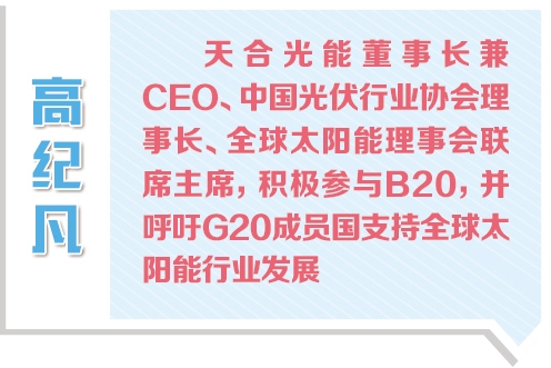 出席B20的全球太陽能理事會(huì)聯(lián)席主席、天合光能董事長兼CEO高紀(jì)凡在接受《經(jīng)濟(jì)日?qǐng)?bào)》記者采訪時(shí)表示,太陽能發(fā)電已成為全球最便宜的電力資源之一,建議二十國集團(tuán)(G20)支持全球太陽能理事會(huì)“至2030年在太陽能行業(yè)創(chuàng)造1000萬個(gè)就業(yè)機(jī)會(huì)”的目標(biāo),建立太陽能領(lǐng)域的國家級(jí)、公私合作的數(shù)據(jù)收集和傳播網(wǎng)絡(luò)。