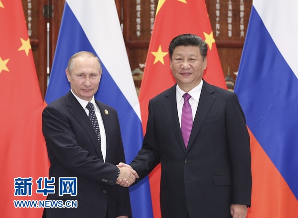 習(xí)近平歡迎普京來華出席二十國集團(tuán)領(lǐng)導(dǎo)人杭州峰會(huì)。習(xí)近平指出,普京總統(tǒng)今年6月訪華期間,我們隆重慶?!吨卸砟类徲押煤献鳁l約》簽署15周年,共同簽署并發(fā)表3份重要聯(lián)合聲明,還見證簽署近30個(gè)務(wù)實(shí)合作協(xié)議,充分展示了兩國深化全面戰(zhàn)略協(xié)作伙伴關(guān)系的堅(jiān)定決心,全面體現(xiàn)了雙方對(duì)重大國際和地區(qū)問題的共同立場(chǎng),發(fā)出了中俄共同維護(hù)全球戰(zhàn)略安全、世界和平穩(wěn)定的一致聲音。雙方要落實(shí)好我和總統(tǒng)先生達(dá)成的各項(xiàng)共識(shí)和協(xié)議,推動(dòng)中俄各領(lǐng)域合作不斷取得新成果。