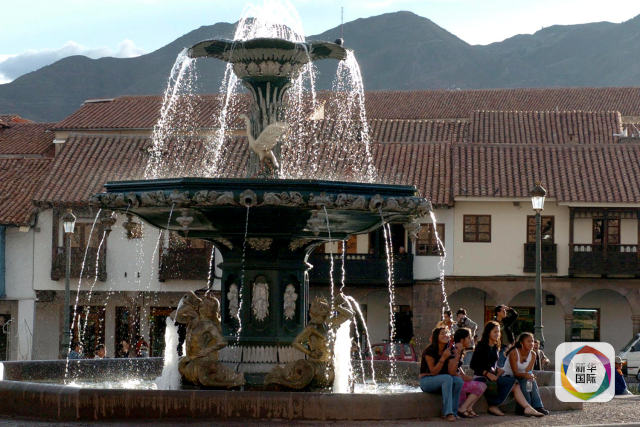 2004年12月6日,在秘魯庫斯科城廣場,行人在噴泉旁休息。新華社記者汪亞雄攝