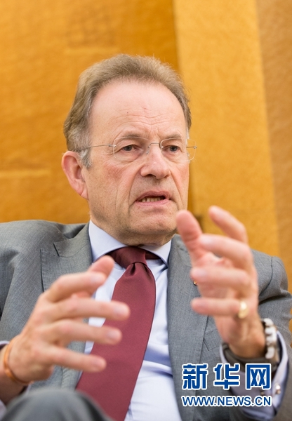 2016年12月19日,在瑞士日內瓦萬國宮,聯(lián)合國日內瓦辦事處總干事穆勒接受新華社專訪?!傲暯街飨牡皆L,再次表明中國對聯(lián)合國多邊主義、對聯(lián)合國機構工作和對聯(lián)合國大家庭的支持?!甭?lián)合國日內瓦辦事處總干事邁克爾·穆勒日前在日內瓦萬國宮接受新華社記者專訪時這樣說。新華社記者 徐金泉 攝