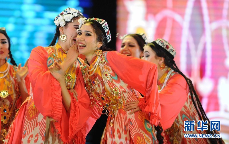 1月18日晚,烏茲別克斯坦首都塔什干人民友誼宮,烏茲別克斯坦舞蹈演員在表演中烏傳統(tǒng)舞蹈。