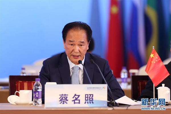 金磚國(guó)家媒體高端論壇執(zhí)行主席、新華通訊社社長(zhǎng)蔡名照主持開(kāi)幕式并發(fā)表題為《深化金磚媒體合作實(shí)現(xiàn)共建共享共贏》的主旨演講。他指出,論壇的成功舉辦,有助于為今年9月在廈門舉行的金磚國(guó)家領(lǐng)導(dǎo)人會(huì)晤營(yíng)造良好氛圍,推動(dòng)金磚國(guó)家合作交流不斷走向深入。
