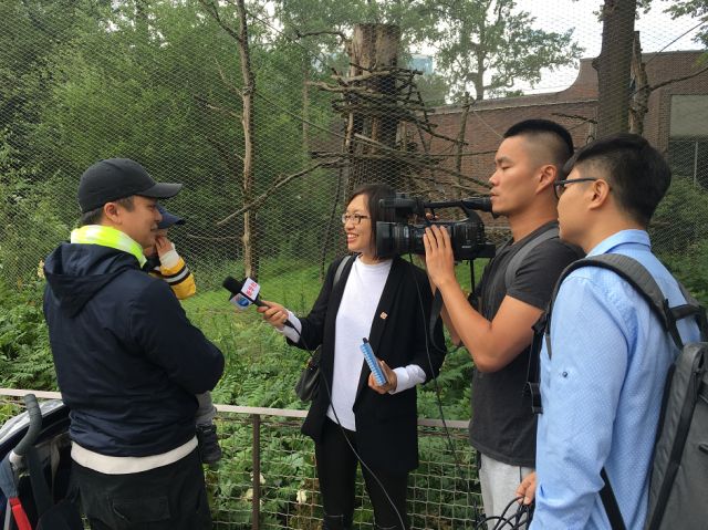 “這幾天這邊下雨,天氣比較涼爽,它們都表現(xiàn)得很適應(yīng)。第一天下雨的時(shí)候,‘夢(mèng)夢(mèng)’就表現(xiàn)得很興奮,雖然沒(méi)有到室外活動(dòng),但是它在室內(nèi)就感受到溫度的變化。通過(guò)監(jiān)控,我們看到,它在室內(nèi)活動(dòng)場(chǎng)玩得很高興,不停地到門(mén)口那邊,想要看看它的新家……”