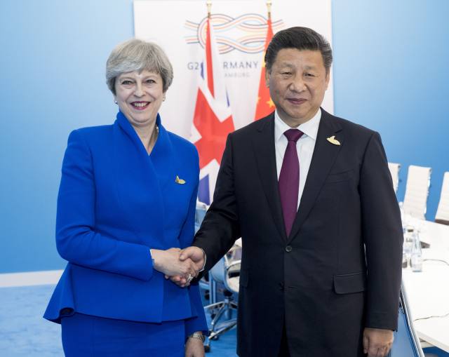 習(xí)近平會(huì)見英國(guó)首相特雷莎·梅。(新華社記者 李學(xué)仁攝)