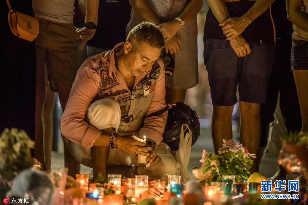 當(dāng)?shù)貢r(shí)間2017年8月18日,西班牙巴塞羅那,當(dāng)?shù)孛癖婞c(diǎn)燭獻(xiàn)花悼念恐襲事件遇難者。17日,一輛白色貨車在巴塞羅那市中心蘭布拉大道加泰羅尼亞廣場附近沖撞人群,據(jù)媒體報(bào)道,死亡人數(shù)已經(jīng)升至14人。(圖片來源: 東方IC)
