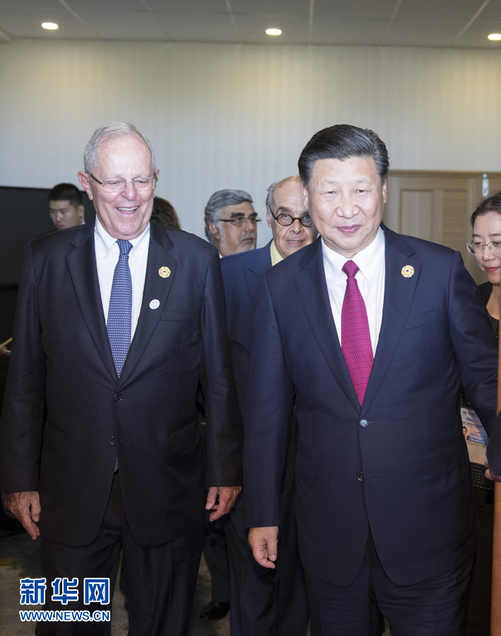 發(fā)表演講后,習近平簡短會見了專程前來聆聽演講的秘魯總統(tǒng)庫琴斯基。
