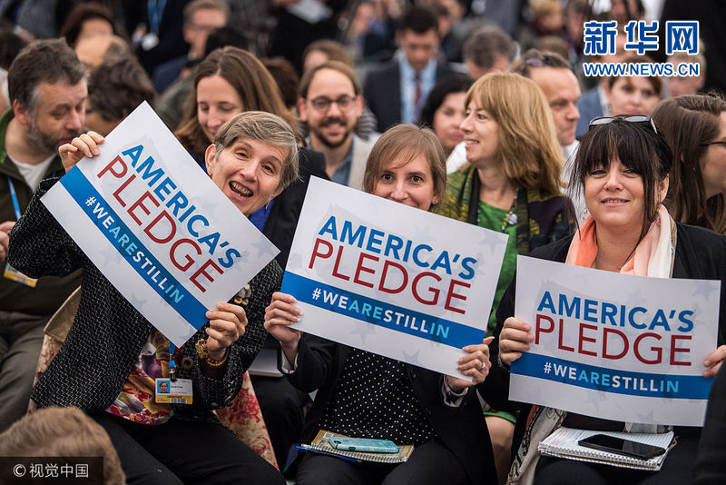 當(dāng)?shù)貢r間2017年11月11日,德國波恩,波恩氣候大會召開,“美國會館”內(nèi)景。雖然美國宣布退出了《巴黎協(xié)定》,但美國氣候談判代表仍出席了波恩的會議。美國除聯(lián)邦外的各級政府均派代表參加波恩會議,且主要目的就是表明他們?nèi)詫⒅铝τ趦冬F(xiàn)美國在巴黎做出的承諾。在美國國內(nèi),成千上萬的市長、州長、部落首領(lǐng)、企業(yè)高管以及普通美國人都在努力降低溫室氣體排放。這個名為“我們?nèi)栽趫允兀╓e Are Still In)”的聯(lián)盟的成員代表了美國一半以上的人口以及54%的經(jīng)濟(jì)產(chǎn)出。“我們?nèi)栽趫允亍保?We Are Still In)、“美國氣候聯(lián)盟”、“氣候市長”(Climate Mayors)和其它諸多計劃向全世界傳遞了這樣一個信息,即美國仍然有很多人正致力于擁有宏偉目標(biāo)的氣候行動之中,而“美國的承諾”(America’s Pledge)正在尋求如何量化并傳播這些承諾。(圖片來源:視覺中國)