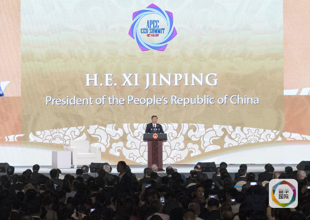 在APEC工商領(lǐng)導(dǎo)人峰會上發(fā)表主旨演講時(shí),習(xí)近平精辟闡述中國發(fā)展的前進(jìn)征程、深刻揭示中國發(fā)展的光明前景、鮮明指出中國發(fā)展的和平本質(zhì)、充分展現(xiàn)中國發(fā)展的世界意義,闡釋中國發(fā)展道路。