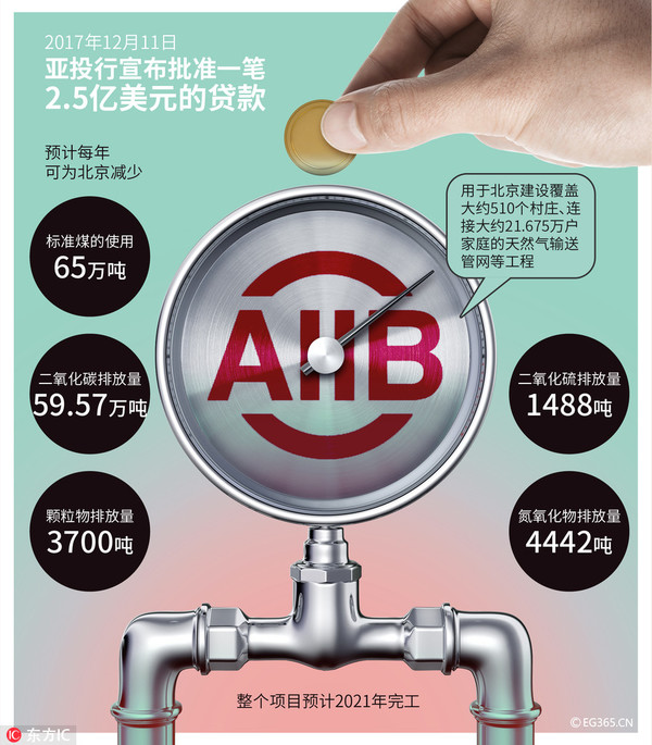 【首個(gè)對(duì)華項(xiàng)目落戶(hù)北京】2017年12月11日,亞投行首個(gè)對(duì)華項(xiàng)目落戶(hù)北京,用于天然氣輸送管網(wǎng)建設(shè)等工程,助力“北京藍(lán)”。秉持“簡(jiǎn)潔、廉潔、清潔”的核心價(jià)值觀的亞投行,贏得世界廣泛信任。