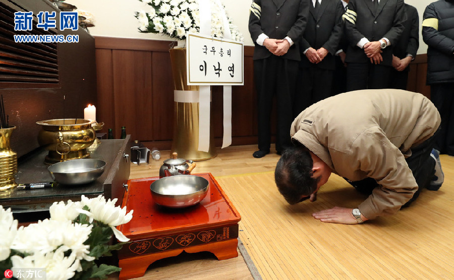 12月23日,韓國忠清北道堤川市,韓國總理李洛淵視察運動中心火災現(xiàn)場,并吊唁火災遇難者。據(jù)報道,21日,韓國忠清北道堤川市一運動中心發(fā)生火災,造成29死29傷,其中20名死者在火災發(fā)生時位于大樓2層的桑拿房內。近日,韓媒公布了火災現(xiàn)場的一組照片。照片顯示,桑拿房堆積了各種洗浴用品,應急出口幾乎被封死。(圖片來源:東方IC)