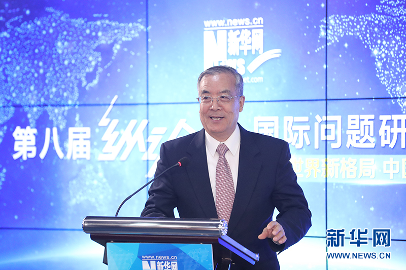 12月26日,新華網(wǎng)第八屆“縱論天下”國際問題研討會成功舉行。圖為中國太平洋經(jīng)濟(jì)合作全國委員會會長、中國國際問題研究院院長、研究員蘇格在主旨演講。新華網(wǎng)發(fā)(郭小天攝)。
