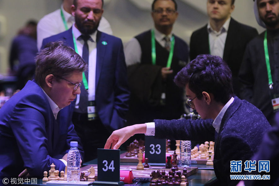 12月26日,沙特阿拉伯利雅得,世界快棋錦標(biāo)賽在當(dāng)?shù)嘏e行。國際象棋聯(lián)合會(huì)24日說,7名以色列選手因簽證申請?jiān)馍程匕⒗芙^無緣參賽。(圖片來源:視覺中國)