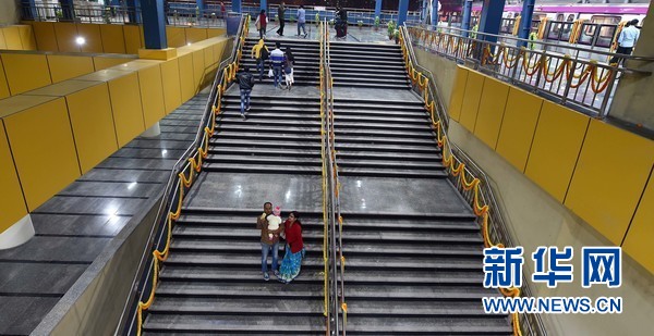 12月25日,在印度首都新德里洋紅色地鐵線,人們站在站臺(tái)臺(tái)階上駐足留影。當(dāng)日,連接新德里及其衛(wèi)星城諾伊達(dá)(Noida)之間的洋紅色地鐵線建成通車。這條線路全長(zhǎng)12.64公里。德里地鐵公司計(jì)劃未來(lái)提高這條地鐵線路自動(dòng)化水平,以“無(wú)人值守模式”運(yùn)行。目前,新德里運(yùn)營(yíng)地鐵線路共有7條,分別用顏色命名,包括紅色、黃色、藍(lán)色、綠色、橙色、紫羅蘭和洋紅色。新華網(wǎng)發(fā) (張迺杰 攝)